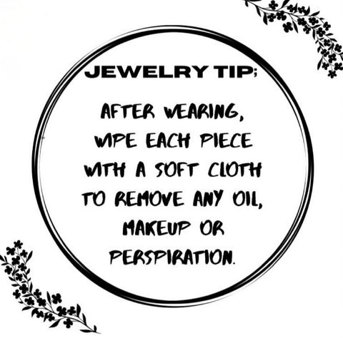 Apply lotion, perfume and hairspray before putting on jewelry to avoid chemical buildup. Never swim or shower with jewelry on.