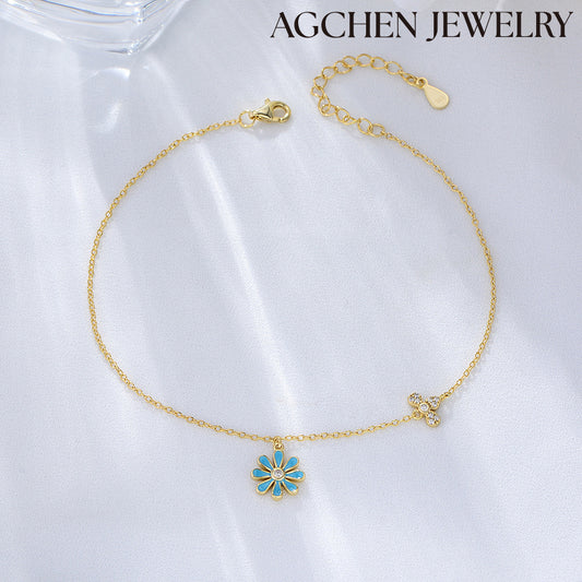 AG S925 Cubic Zirconia 14K Gold Charm Bracelet