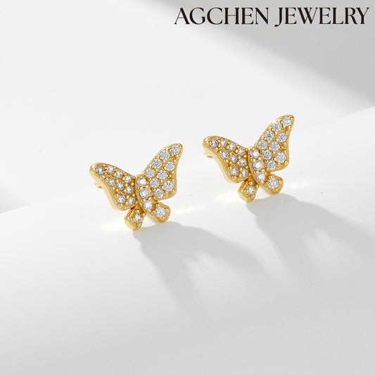 AG S925 Charming Little Butterfly Earrings with Zircon