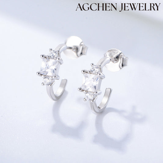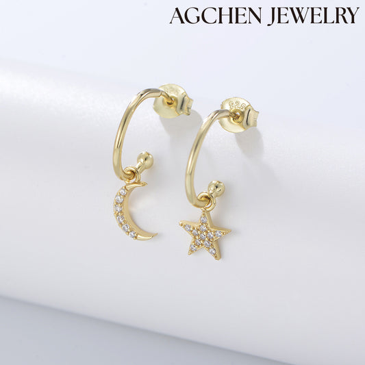 AG S925 Cute Moon-Shaped Earrings with Zirconia