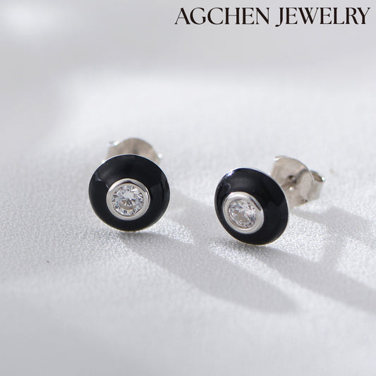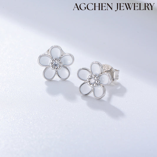 AG S925 White Enamel Flower Earrings with Zircon for Delicate Beauty