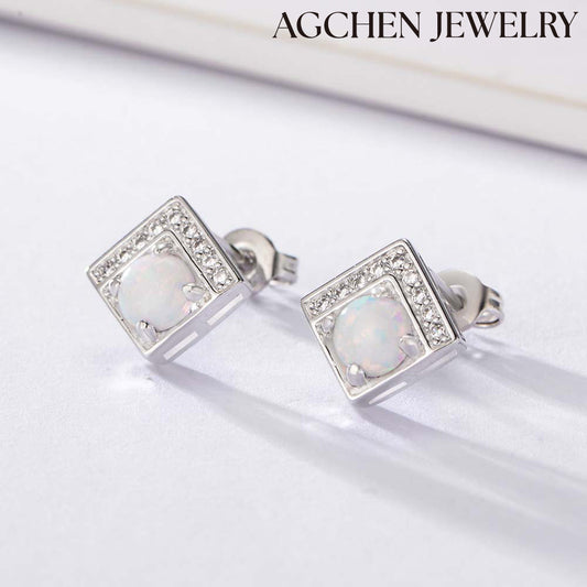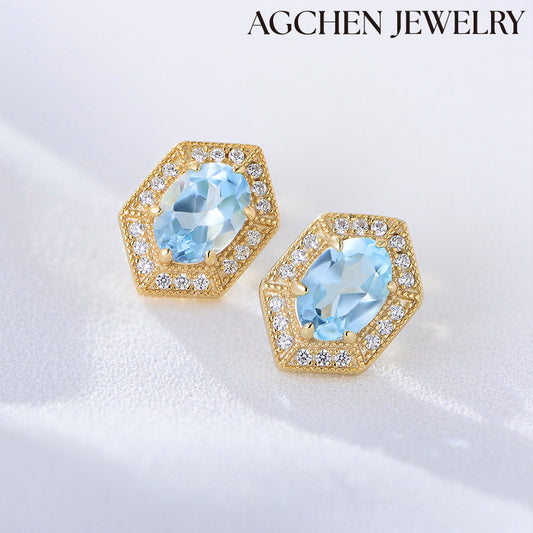 AG S925 Moonstone Hexagon Zircon crystal Earrings