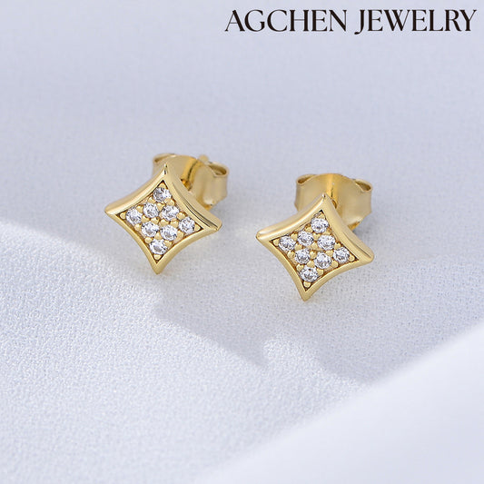 AG S925 Star-Shaped Stud Earrings with Zirconia