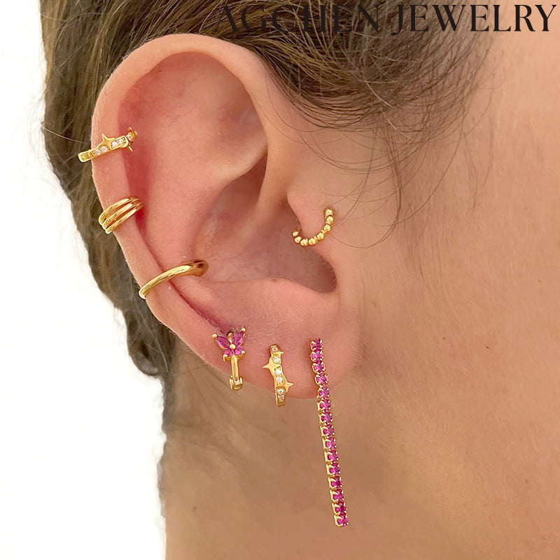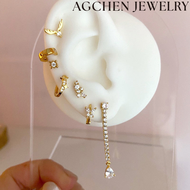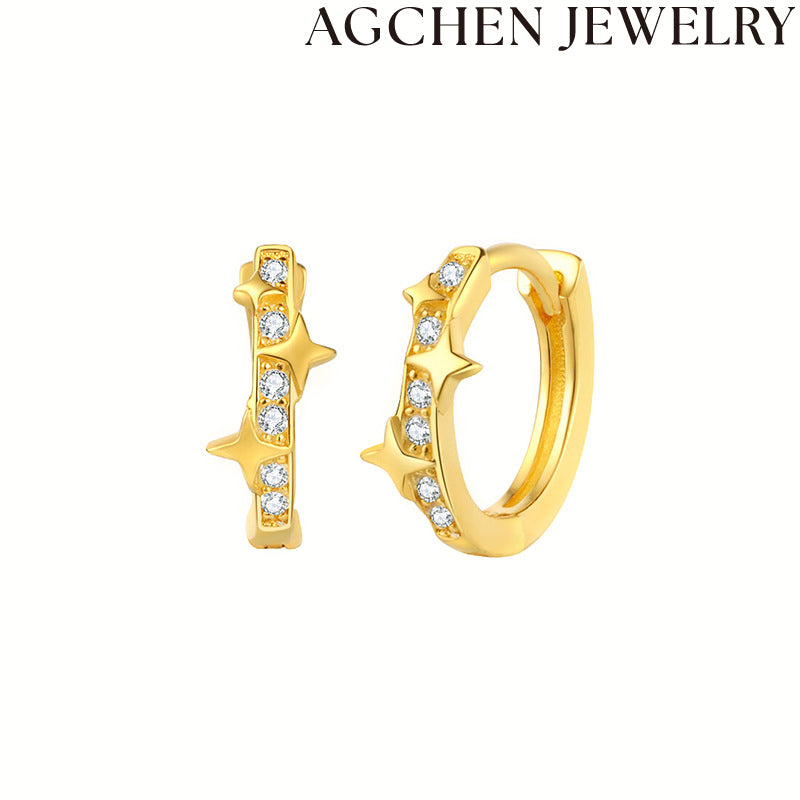 Briletaj stelformaj orelringoj ornamitaj per brilantaj zirkoniaj ŝtonoj, perfektaj por aldoni ĉielan ĉarmon al via aspekto.
